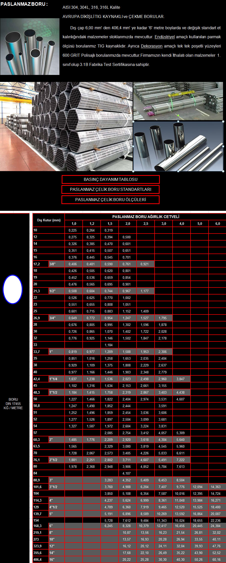 PASLANMAZ ÇELİK ANALİZ TABLOSU